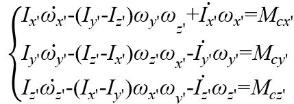 其中,Ix是转动惯量矩阵的沿第一个主方向的特征值,ωx和Mcx代表角速度和力矩沿转动惯量矩阵第一个主方向的分量,以此类推可给出三个主方向的欧拉方程。
