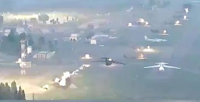 乌克兰发布的视频画面触目惊心:俄军基地浓烟滚滚,图-95MS战略轰炸机烈焰吞噬,部分无人机甚至直击飞机中央翼盒,让修复几无可能。