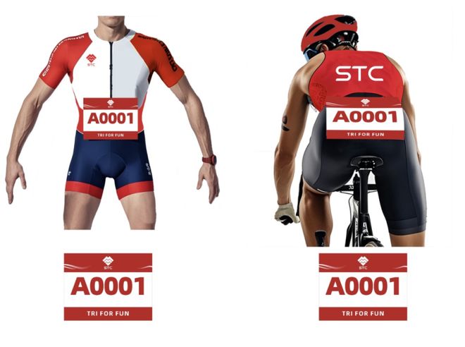 1. 组委会提供两张号码簿,比赛前佩戴于骑行及跑步对应的衣服上:骑行赛段位于背后腰部位置,跑步赛段位于前身腰部位置,骑行和跑步阶段必须佩戴号码簿。