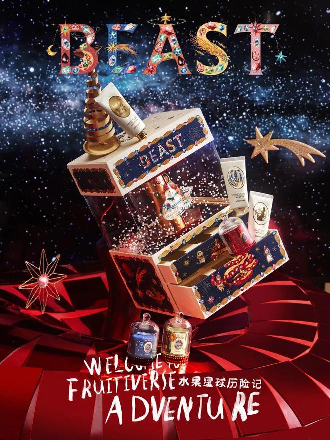 近日,BEAST野兽派正式拉开2025圣诞季帷幕,品牌经典IP雪怪以星际船长新形象惊喜回归,携手好朋友们开启“水果星球历险记”全新篇章,上演一场华丽可爱、充满圣诞节日氛围的冒险故事。系列视觉以闪亮宝石与浩瀚宇宙为创意灵感,邀请大家一同探索充满香气与惊喜的神秘宝藏。