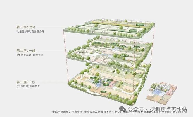 “立体景观芯”,下沉庭院复合型功能空间,非平面铺陈,目之所及皆是立体画境。