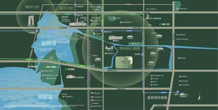 出行便捷:5、6、8号三条地铁线穿插,快速连接全城。金鸡湖大道、中环东线等主干道环伺,开车去哪都方便。